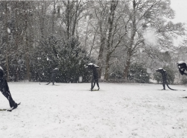 Bad Homburg (js). Für die dicken Schneeflocken, die den Gustavsgarten in eine weiß gewebte Winterwunderlandschaft verwandelten und die Villa Wertheimber umschwebten, hatte Necati Öziri in der vergangenen Woche keinen Blick. Oder auch einfach keinen Platz in seinem Kopf, in seinem schreibenden Ich. Nicht mal für die riesigen „Emissary Cats“ auf zwei Beinen von Laura Ford, Skulpturen im Park, die im Schnee besonders gut zur Geltung kommen. Diese Welt da draußen vor dem Fenster passt nicht zum Tunnelblick, den er braucht, die Figuren für seinen neuen Roman zu entwickeln. Necati Öziri ist …