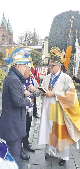 Bad Homburg. Die Karnevalisten meinen es ernst und mit ihnen der katholische Pfarrer Werner Meuer und die Vertreter der Politik. Alle tragen an diesem Tag die Narrenkappe. Sie wollen Spaß haben, Freude und Menschlichkeit in die Welt tragen in schwierigen Zeiten. Gemeinsam und über alle selbst konstruierten Grenzen hinweg. Der „Närrische Gottesdienst“ in der Kirche St. Marien war eine offene fröhliche Demonstration für diesen verfolgten Ansatz in der fünften Jahreszeit bis zum Höhepunkt am ersten März-Wochenende.
