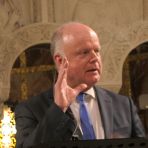 Christian Lehnert, evangelischer Theologe und freier Schriftsteller, den die Stadt Bad Homburg für diese zweite Veranstaltung zum Festjahr „500 Jahre Evangelisch in Bad Homburg“ in Kooperation mit der Kirche hatte gewinnen können, er hätte sicher Wesentliches zum Thema Reformation zu sagen gehabt. Propst Oliver Albrecht (63) sprach zur Frage, wie und wohin sich die evangelische Kirche in der Gegenwart bewegt und bewegen müsse. Albrecht forderte die Zuhörer in der Erlöserkirche heraus. Letztlich müssten wir die Gedanken von „Kirche ohne Geld“, „Verlust vertrauter Formen von Kirche“ und von Mitgliederschwund zulassen, so Albrecht. Er ermahnte jedoch die hauptamtlich und ehrenamtlich Verantwortlichen auf Verwaltungs- und Entscheidungsebenen der EKHN, die „geistliche Eigenverantwortung der Menschen“ zu stärken. Doch stattdessen würde die „Mitgliederentwicklung als Mutter aller Probleme identifiziert“ und mit schön entworfenen „Logos“ für Kirche geworben. Albrecht, der seit 2015 Propst ist und jetzt von der Führungsebene der Kirche auf eigenen Wunsch wieder ins Pfarramt einer Kirchengemeinde wechselt, sagte: „Kürzungen müssen sich auf alle Felder kirchlichen Handelns erstrecken. Die Verwaltung muss sich fragen: Wo erschweren Kürzungen die Arbeit an der Basis? Stattdessen verfeinert die kirchliche Verwaltung derzeit lediglich die Antworten auf Fragen, die seit 30 Jahren kein Mensch mehr stellt. Wo haben wir den Kontakt zu Mitgliedern verloren – wo haben sich Blasen verselbständigt?“