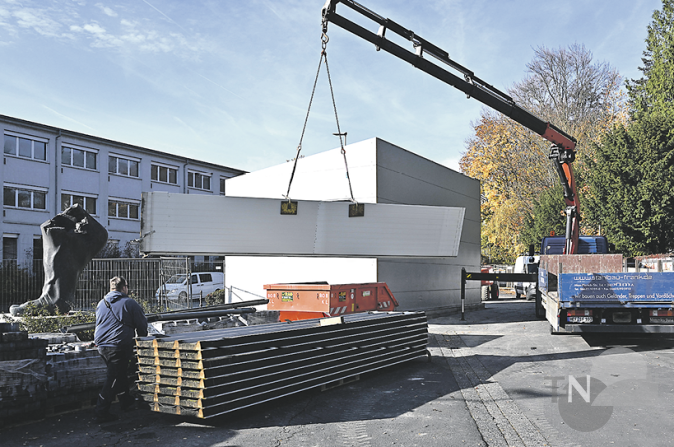 Stück für Stück wird die Feuerwehr-Behelfshalle in Dornholzhausen abgebaut.Foto: fk