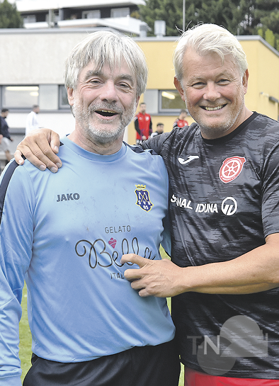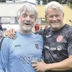 Zwei Legenden der Spvgg.05 diesmal als Kontrahenten: Torwart Marcus Croonen (l.) und Torjäger Sven Müller.Foto: gw