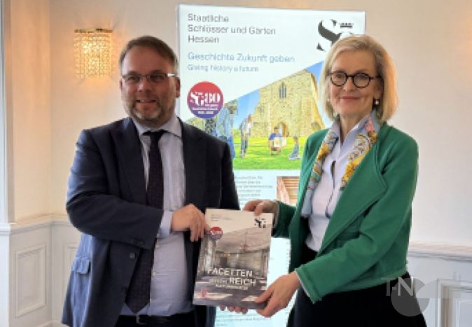 Bad Homburg (hw/eh). Mit einem Blick zurück auf acht Jahrzehnte Kulturgeschichte – und zugleich mit einem klaren Blick nach vorn – haben die Staatlichen Schlösser und Gärten Hessen (SG) im Schloss Bad Homburg ihr Jubiläumsjahr eröffnet. Bei einer Pressekonferenz stellten der Minister für Wissenschaft und Forschung, Kunst und Kultur Timon Gremmels und SG-Direktorin Kirsten Worms das Programm zum 80-jährigen Bestehen der Institution vor. In den kommenden Monaten möchte die SG einem möglichst breiten Publikum ihre Kulturschätze sowie ihre tägliche Arbeit präsentieren. Unter dem Motto „Wir geben Geschichte Zukunft“ sollen im Laufe des 80. Jubiläumsjahres 80 Veranstaltungen stattfinden – von Expertenführungen über Aktionstage bis hin zu Einblicken hinter die Kulissen der Denkmalpflege.