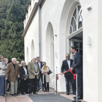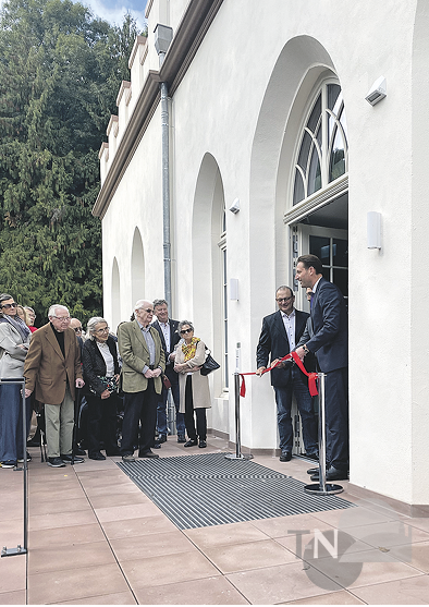 Oberbürgermeister Alexander Hetjes durchschneidet das rote Band – das Museum Gotisches Haus ist offiziell eröffnet.Foto: csc