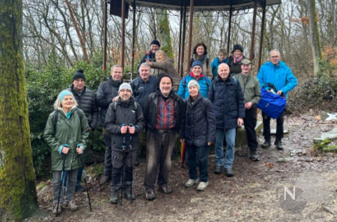 Bad Homburg (hw). Am Sonntag den 22.02.2026 veranstaltete der Wanderclub Kirdorf 1922 e.V. eine Rundwanderung von der Hohemark zum Gilboa Tempel und wieder zurück. Die Wanderung mit 16 Teilnehmern in fetterfester Ausrüstung, startete bei leider schlechtem Wetter von der Hohemark aus. Die Wanderstrecke betrug etwa elf Kilometer und war durch das massive Tauwetter sehr anspruchsvoll. Das Wasser kam aus allen Ecken des Waldes, sodass es teilweise sehr anstrengend war. was aber die tolle Stimmung unter den Mitwanderern nicht beeiflusste. Nach einer schönen gemütlichen Schlussrast im Restaurant „Waltraud„ ging es am späten Nachmittag per Bus zurück nach Bad Homburg.