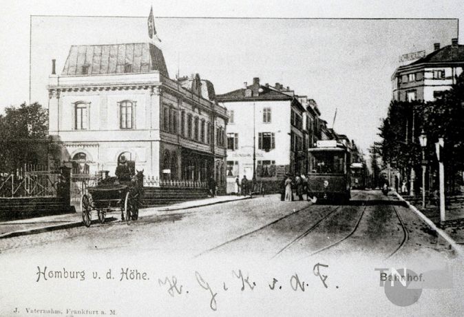 Der alte Homburger Bahnhof mit Kutsche und StraßenbahnFoto: Stadtarchiv