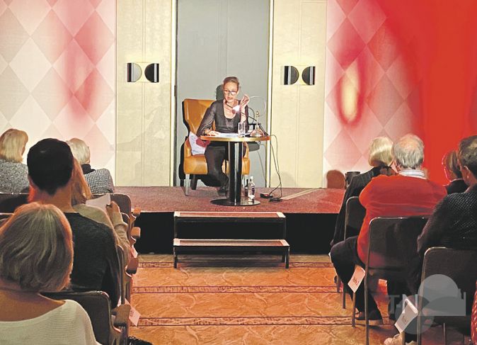 Diesmal nun gab die vielfach ausgezeichnete Jeanette Hain, die unter anderem aus dem „Tatort“, dem „Bozen-Krimi“ oder der sechsteiligen ARD-Spionage-Serie „Davos 1917“ bekannt ist, ihr Solo-Debüt. Eine absolut gelungene Premiere! Eindrucksvoll verwandelte sich die Schauspielerin abwechselnd in die Protagonistin von Bonnie Garmus’ Roman, die hochbegabte Chemikerin Elizabeth Zott, dann aber auch in den brillanten, etwas verschrobenen Nobelpreiskandidaten Calvin Evans, in den alleinerziehenden Walter Pine und schließlich in Zotts cholerischen Chef. Hains lebhafte und humorvolle Art, die Passagen und Dialoge des Romans vorzutragen, machten die handelnden Personen lebendig und das Zuhören zu einem großen Vergnügen.