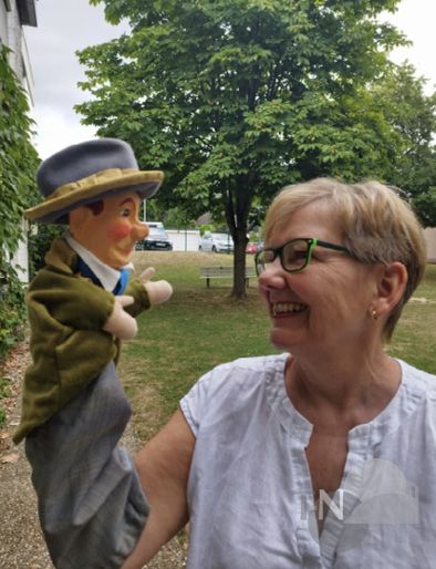 Yvonne Hofmann, hier mit dem „Kurdirektor“, komplettiert als Puppenspielerin das Team der Kasperl-Kompanie.