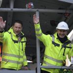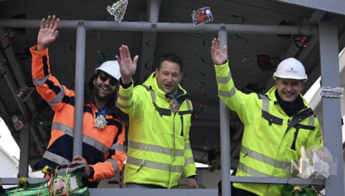 Die drei von der Baustelle lassen grüßen. Stadtrat Tobias Ottaviani, Oberbürgermeister Alexander Hetjes und Bürgermeister Dr. Oliver Jedynak nehmen als Bauarbeiter die U2-Verlängerung auf die Schippe.Foto: fk