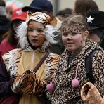 Auch Kevin (27 Jahre) mit einem rosafarbenen, aufblasbaren Pony unterwegs und Maike (25 Jahre), als Meerjungfrau kostümiert, waren aus Eschborn zum Zug gekommen. Bereits seit zwei Jahren, so verrieten sie, sind sie beim Kirdorfer Zug dabei und schätzen die „Familiäre Atmosphäre. „Nach dem Zug werden wir uns noch mit Freunden treffen und den Tag ausklingen lassen“, so die beiden.