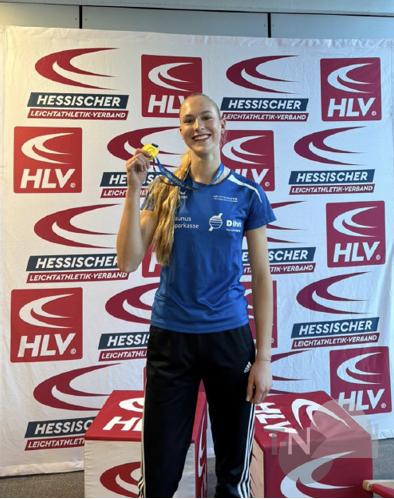 Die 16-jährige Leichtathletin Mia Hartmann vom TV Dornholzhausen präsentiert stolz ihre Medaille.Foto: TV Dornholzhausen