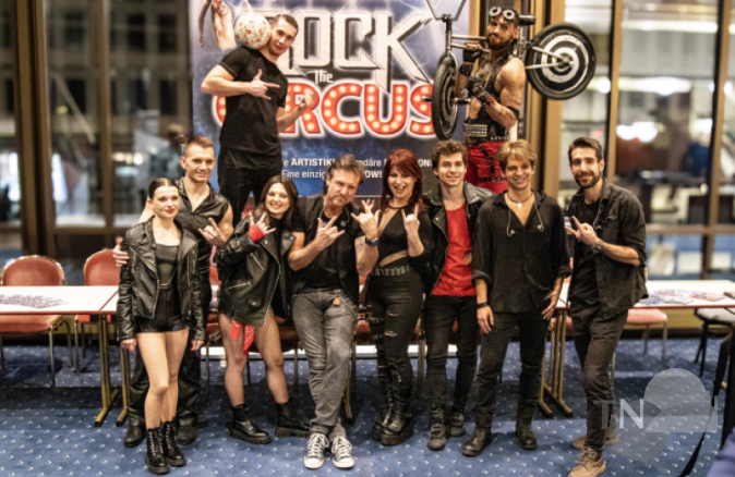 Das Ensemble von „Rock the Circus“ verbindet Kultsongs mit atemberaubenden Artistikdarbietungen auf der Bühne im Kurtheater.Foto: sk