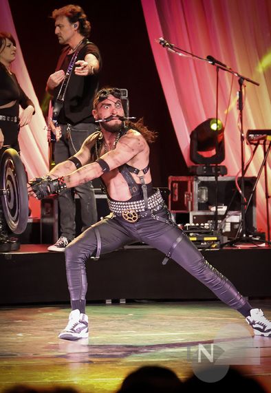 Schon beim ersten Riff von Guns N’ Roses’ „Sweet Child O’ Mine“ war klar, dass dies kein gewöhnlicher Theaterabend werden würde. Die sechsköpfige Live-Band lieferte den druckvollen Soundtrack für eine artistische Reise durch die Rockgeschichte. Von AC/DC bis Queen – jeder Song war präzise auf die jeweilige Darbietung abgestimmt, was für eine dichte Atmosphäre und zahlreiche Gänsehautmomente sorgte.
