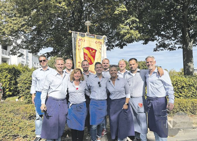 Gut gelaunt und motiviert: Das Kerbteam beim Kerbeumzug, das vom Zeltaufbau am Mittwoch bis zum Zeltabbau am Montag quasi auf dem Festplatz lebt und sich rund um die Uhr um einen reibungslosen Ablauf kümmert.Foto: Aale Eschbächer