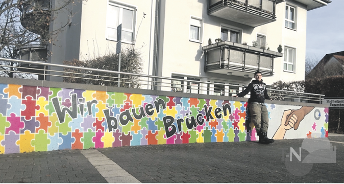 Bad Homburg (hw). Das Stadtteil- und Familienzentrum (SFZ) Gonzenheim begrüßt ein neues, farbenfrohes Kunstwerk auf seinem Gelände. Der junge Bad Homburger Künstler Nate Matzke hat im November die Mauer an der Grundstücksgrenze des Zentrums in ein lebendiges Graffiti verwandelt. Auf beiden Seiten erstrahlt nun ein Kunstwerk, das Lebensfreude, Vielfalt und Zusammenhalt symbolisiert.