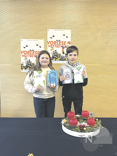 Leilah Pollner und Theo Knust vertreten die Humboldtschule beim Kreisentscheid des Vorlesewettbewerbs.Foto: HUS