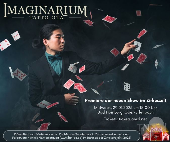 Im Rahmen des Zirkusprojekts 2025 bietet Tatto Ota seine neue Show in der unvergleichlichen Atmosphäre eines Zirkuszeltes dar. Erst kürzlich verzauberte er das Kinderheim in Bad Homburg – nun kann man ihn Ende Januar auf einer großen Bühne erleben.