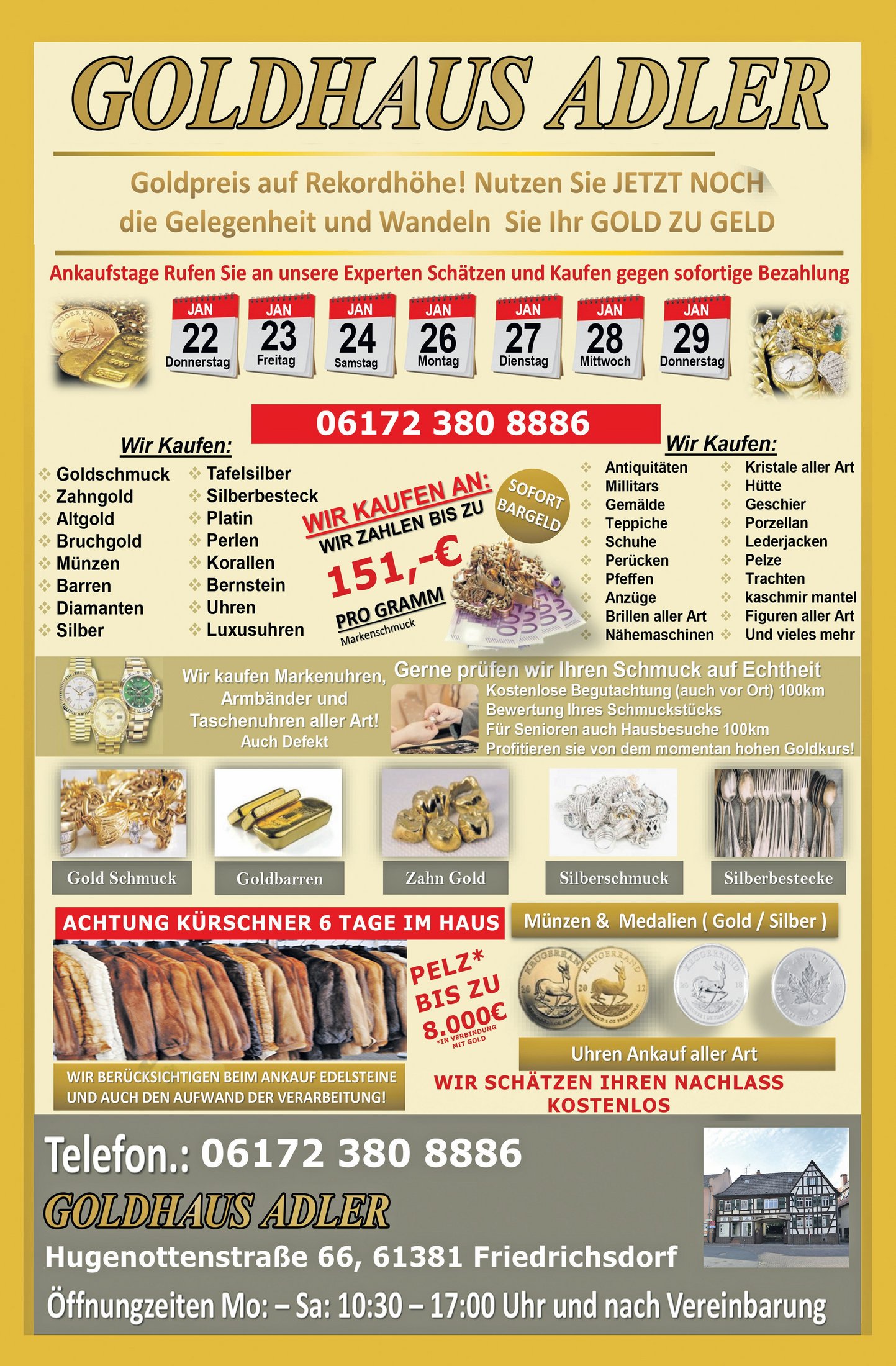 Bad Homburg (hw). Am Samstagvormittag wurde aus einem Uhrengeschäft in der Louisenstraße eine hochwertige Uhr gestohlen. Gegen 11.30 Uhr betrat der unbekannte Täter das Geschäft und entwendete aus dem Schaufenster eine Uhr der Marke Seiko. Daraufhin flüchtete der Dieb in unbekannte Richtung. Der Täter hatte einen Vollbart und trug eine dunkle Kapuze kombiniert mit einer grauen Jacke mit weißem Linienmuster an beiden Ärmeln. Die Polizei in Bad Homburg nimmt Hinweise unter Telefon 06172-1200 entgegen.