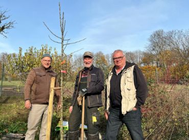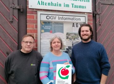 Neuenhain (bs) – Im Opel-Zoo informiert der „Apfel-Lehrpfad“ die Besucher über selten gewordene Sorten. 16 ausgewählte Apfelbäume, Quitte und der als Zutat im Apfelwein geschätzte Speierling sind hier zu sehen. Drei Bäume wurden nun von Mitgliedern des Obst- und Gartenbauvereins Neuenhain e.V. neu angepflanzt.