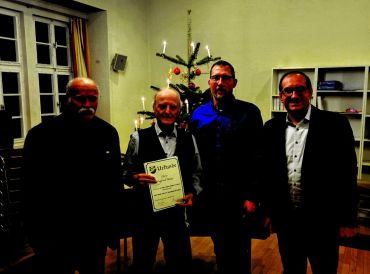 Nach einigen vorweihnachtlichen Liedern des Chores ehrten Ingo Mückenheim und der frühere Vorsitzende Dr. Frank Blasch Apollo-Sänger Siegfried Butzer für seine …