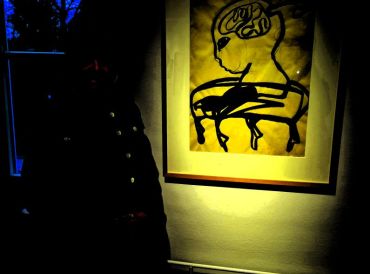 Bad Soden (es) – Betritt man den Raum im Kunstkabinett im Badehaus, so erspäht man bildliche Darstellungen, die an Höhlenmalereien erinnern.