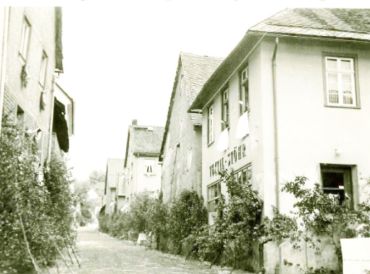 Altenhain (Sc) – Ein Bild aus alten Tagen weckt Erinnerungen: Die schön geschmückten Häuser erinnern an einen Umzug anlässlich eines Vereinsfestes oder vielleicht auch anlässlich einer Prozession. Das Foto aus den 60er Jahren zeigt auf der rechten Seite das Haus Wehner mit dem Geschäft von „Textil Stöhr“ und links die „Middlerst Wertschaft“ zum Taunus. Damals waren die Straßen noch mit Kopfsteinpflaster belegt und eine Rinne diente dem Wasserablauf bei Regen – Fußwege gab es keine.