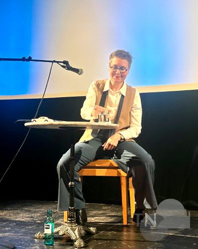 Großes Kino im Casablanca: Wie ihre „göttlichen“ Protagonistinnen auf der Leinwand Garbo und Dietrich hat auch Angela Steidele die Hosen an – in der Literatur. Mit ihrer spannenden Lesung zog sie die Zuschauer im Casablanca „Ins Dunkel“.Foto: Sura