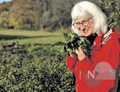 Bad Soden (bs) – An diesem Herbsttag spricht die Natur alle Sinne an: Der Himmel leuchtet blau, die Sonne lässt das Laub in satten Gelb- und Rottönen leuchten, es riecht erdig und die Singvögel sind fast so munter wie im Frühling. Kräuterfachfrau Regine Ebert ist mit ihrem Mischlingsrüden Sammy im Süßen Gründchen am Sauerborn unterwegs. Nicht schwer zu erraten, wonach sie hier sucht: Kräuter!