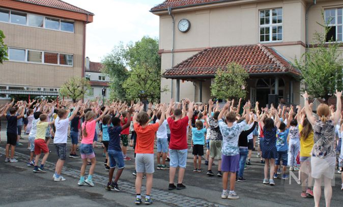 Der Abschiedstanz der gesamten Schulgemeinde rührte Ursula Jakobi-Birk zu Tränen.