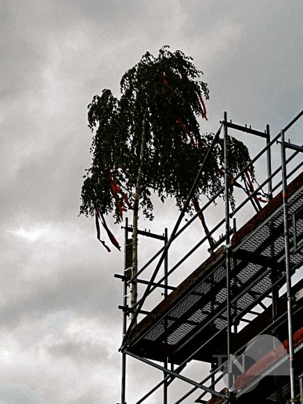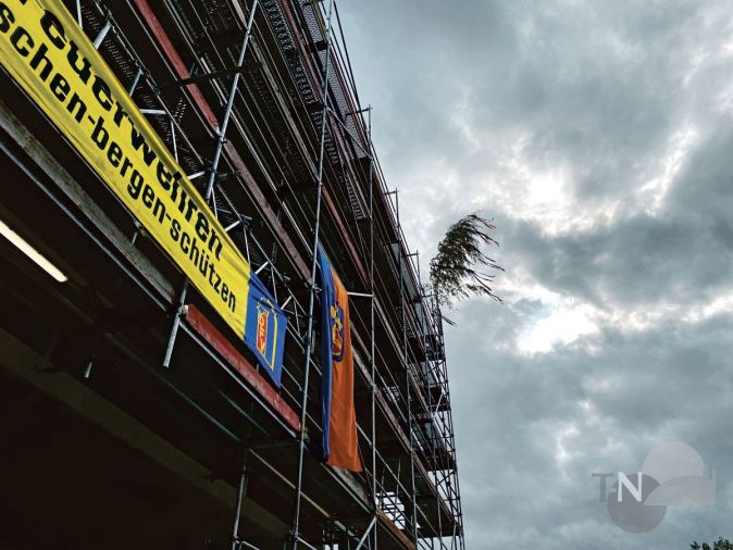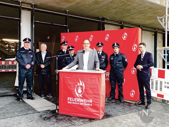 Normalerweise erfolgt die Aufstellung der „Richtkrone“, wenn der Dachstuhl fertig ist; da die neue Feuerwache jedoch ein Flachdach haben wird, wurde der mit Bändern geschmückte Baum aufgestellt, als das Dach „dicht“ war – eine schöne Tradition, die Raum für eine Zusammenkunft und eine erste Besichtigung der Fahrzeughalle bot. Allerdings wird es noch ca. zwei weitere Jahre dauern, bis die Wache von der Freiwilligen Feuerwehr Bad Soden bezogen werden kann.
