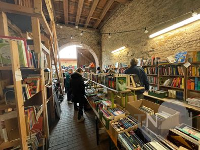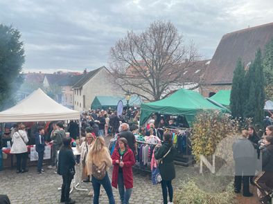 Neben den Ständen im Freien und in der Scheune wurden auch die Räumlichkeiten im Herrnbau ausgiebig genutzt. Vom T-Keller bis zum Saal im ersten Stock drängten sich Standbetreiber und Besucher dicht an dicht und sorgten für eine lebendige Atmosphäre. Für den kleinen oder großen Hunger gab es eine Kuchentheke sowie Hamburger, Pilzpfanne und die mittlerweile berühmte Erbsensuppe. Mit Kaffee, Glühwein und Kinderpunsch gestärkt, wurde so nach Herzenslust gebummelt. Ob Hausrat, Kinderspielzeug, Second-Hand-Kleidung, Elektro- oder Dekoartikel – mit einem vielfältigen Angebot typischer Flohmarkt-Artikel kamen alle auf ihre Kosten. Während Bücherwürmer im umfangreichen Bücher-Antiquariat in der Scheune stöberten, gab es für Kenner und Sammler mehrere Stände für Kunstobjekte, Bilder, Porzellan- und Glaswaren. Mit einer großen Sammlung an Schallplatten, CDs und DVDs kamen auch Musik- und Filmliebhaber dabei nicht zu kurz. Darüber hinaus winkten bei der Tombola im ersten Stock zahlreiche Preise. Die erworbenen Artikel konnten bei einer eigens eingerichteten Packstation im Garten des Herrnbau abgegeben werden, um die weitere Suche zu erleichtern.