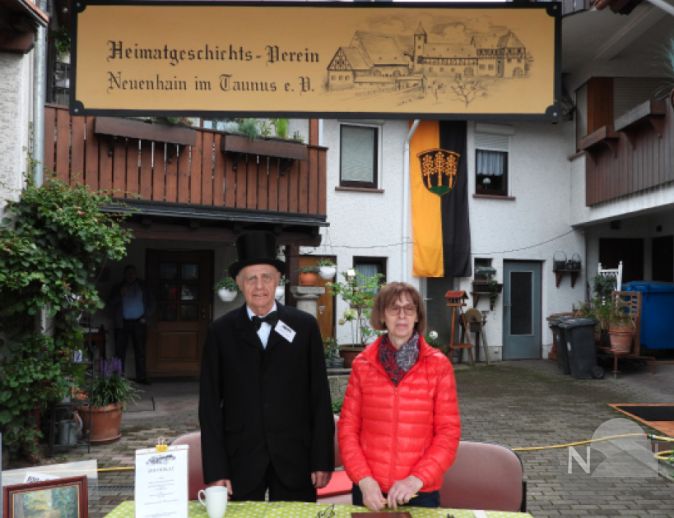 Am Stand des Heimatgeschichtsvereins Neuenhain gab es besondere Neuenhainer Andenken. Neben der Stadtchronik boten Jürgen und Hildegard Butzer aparte historische Kalender des einstigen Reichsdorfes an. Mit seinem klassischen Zylinder zog Jürgen Butzer alle Blicke auf sich. Natürlich konnte man überall auf dem Herbstmarkt schöne „Mitbringsel“ erstehen. Von kuscheligen Mützen über modische Taschen bis hin zu ausgefallenen Schmuckstücken – sicher war für jeden Geschmack etwas dabei. Leuchtende Hagebutten, duftige Tannennadeln und bunte Blätter – einfach ein Hauch von Herbst steckte in den dekorativen Gestecken, welche die Skyline Drums anboten. Während der Nachwuchs, in Erinnerung an den Sommer, ein Eis schleckte, unterhielten sich die Erwachsenen an den Ständen der Parteien und informierten sich beim Verein Klimabewusstes Bad Soden über die neuesten Solarzellen. Dazu gab es ein aromatisches Glas Wein vom Lions Club. Das Angebot auf dem Herbstmarkt in Neuenhain war so mannigfaltig, dass man kaum merkte, wie die Stunden vergingen.