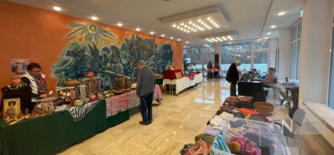 Die Erlöse wurden an das Projekt Konomusu gespendet, das sich für die Berufsausbildung junger Mädchen in Sierra Leone einsetzt. Ein weiterer Stand bot handgefertigte Schmuckstücke aus Kenia und Holzfiguren aus Nigeria sowie Teller und Schüsseln aus recyceltem Papier aus Uganda an, deren Erlöse im Rahmen des Projekts „Pearls of Africa“ direkt an die 60 beteiligten Familien flossen.