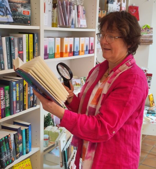 Eine Mitarbeiter*in des Buchladens ist in der Nähe, telefonisch erreichbar und kann mit Tipps helfen.