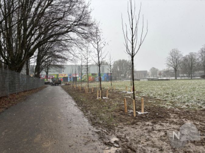 Die neuen Bäume im Mühlenpark wurden nur mit sehr niedrigen Verankerungen angepflanzt. Das soll den Stämmen mehr Bewegungsfreiheit bringen.Foto: Stadt Eschborn