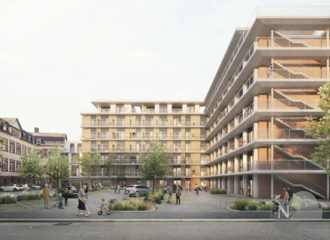Das Konzept basiert nach Angaben des Architekturbüros „Schmid Plöcker“ auf einer effizienten Umstrukturierung zweier bestehender Bürogebäude, wobei ein Erschließungskonzept mit Laubengängen zum Einsatz kommt. Diese Laubengänge ermöglichten eine optimale Anordnung der Wohnungen, maximierten die Wohnflächen und sollen zur Verbesserung der Belichtung und Belüftung beitragen. „Durch diese Lösung wird der Bauablauf vereinfacht, da die bestehenden Strukturen weitestgehend erhalten bleiben und nur minimal umgebaut werden müssen. So schaffen wir schnell und kostengünstige Wohnflächen“, heißt es in einer Präsentation des Architekturbüros.