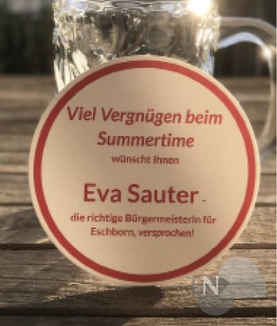 Diese Bierdeckel soll SPD-Bürgermeisterkandidatin Eva Sauter nicht mehr bei Summertime-Veranstaltungen flächendeckend verteilen.Foto: SPD