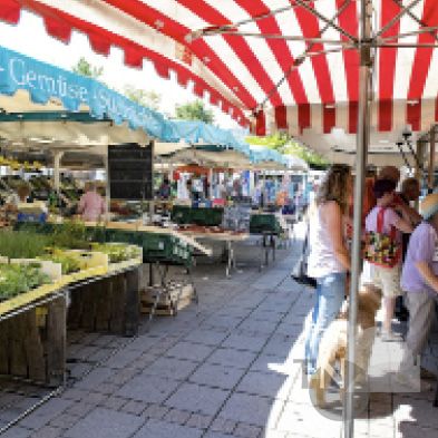Der Eschborner Wochenmarkt muss wegen der Bauarbeiten am Rathausplatz umziehen. Ab Januar öffnen die Stände am alten Festplatz. Archivfoto: Stadt Eschborn