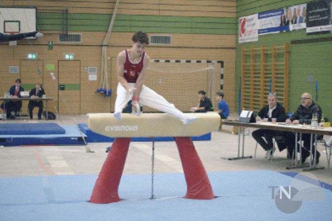 TVE-Turner Silas Drosin beim Wanderspreizen am Pferd.Foto: TVE