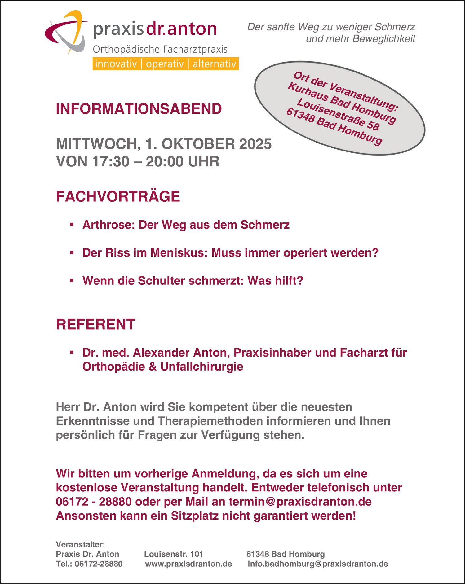 Friedrichsdorf (fw). Der TV Burgholzhausen bietet seit einigen Jahren Reha- Sport an. Das Angebot wächst kontinuierlich und umfasst mittlerweile zwei Orthopädische Stuhlgymnastikkurse, drei Orthopädische Reha-Kurse für mobile Menschen und einen Lungensportkurs. Mit einer Verordnung vom Arzt können die Teilnehmer völlig kostenfrei an diesen Kursen teilnehmen. Reha-Sport ist ein Gruppenangebot. Beim Training werden Gelenke mobilisiert und Muskeln auf schonende Art gekräftigt und gedehnt. Stabilität, Gleichgewicht und Koordination werden ebenso in das Training integriert. Natürlich darf auch der Spaß dabei nicht zu kurz kommen. Jeder Teilnehmer arbeitet hierbei in seinem eigenen Rhythmus und seinem persönlichen Bewegungsspielraum. Wer nun neugierig geworden ist, ist …