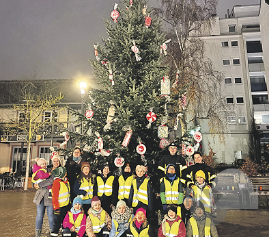 Friedrichsdorf (fw). In den vergangenen zwei Wochen haben die Kinder der Minifeuerwehr Burgholzhausen fleißig Schmuck für den Weihnachtsbaum am Landgrafenplatz gebastelt. Entstanden sind dabei farbenfrohe Bonbons und schön verpackte Päckchen. Der Bauhof hatte zuvor die Lichterketten sowie den gebastelten Baumschmuck im oberen Teil des Baumes angebracht. Vor kurzem schmückten die Kinder dann selbst mit großer Freude den unteren Bereich des Baumes und wurden dabei tatkräftig von ihren Betreuenden unterstützt. So einen großen Weihnachtsbaum schmücken macht schließlich Spaß. Da sind sich alle einig. Aus dem Rathaus ist zu hören: „Die Stadt bedankt sich bei der Mini-Feuerwehr und ihren Betreuenden für den liebevoll geschmückten Baum und lädt alle Interessierten ein, sich schon jetzt mit dem festlich geschmückten Baum am Landgrafenplatz auf die Adventszeit einzustimmen.“