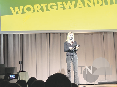 Sophie Groß trägt ein sehr emotionales und persönliches Gedicht vor. Für ihren Mut und ihren einzigartigen Text erntet sie großen Applaus vom Publikum.Foto: bin
