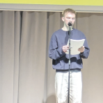 Die präzise Betonung, das Spiel mit Lautstärke und Geschwindigkeit sowie bewusst gesetzte Pausen machten seinen Vortrag lebendig. Auch sein zweiter Text, der sich mit dem Motiv des Schattens befasste, fand große Begeisterung im Publikum. Er entstand auf Grundlage eines Ausflugs mit dem Deutsch-Leistungskurs ins Romantik-Museum. Es war ein Aufritt, der nicht nur stilistisch, sondern auch inhaltlich und atmosphärisch voll überzeugte.