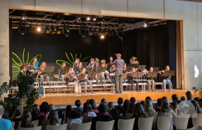 Die Moderation übernahm der stellvertretende Schulleiter und Musiklehrer Michael Hollenstein. „Es ist mir eine große Ehre, so viele musizierende Menschen an unserer Schule begrüßen zu dürfen“, erklärte Hollenstein. Besonders freue er sich über die Grundschulen, die in diesem Jahr teilnehmen.