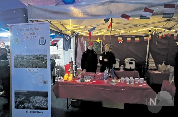 Der Förderkreis der Städtepartnerschaft zeigte „Fahnen“ und servierte Caromber Weihnachtspunsch.Foto: privat