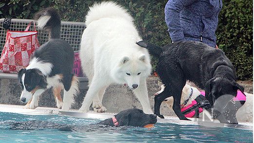 Das war aber die Ausnahme, auch wenn der eine oder andere Hund zögernd am Beckenrand stehen blieb und sich das nasse Treiben lieber von dort aus anschaute.