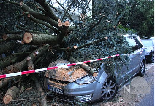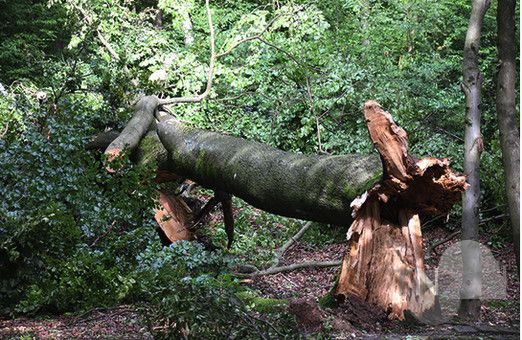 Wir haben zwar in der letzten Ausgabe über die Schäden berichtet, die das Gewitter in der Nacht zum Dienstag der letzten Woche anrichtete, konnten die Berichte aber aus drucktechnischen Gründen nicht illustrieren. Deshalb seien hier zwei Beispiele nachgeholt: ein Bild aus dem Gimbacher Weg (oben) und der vom Sturm gefällte Riesenbaum in Eppenhain.
