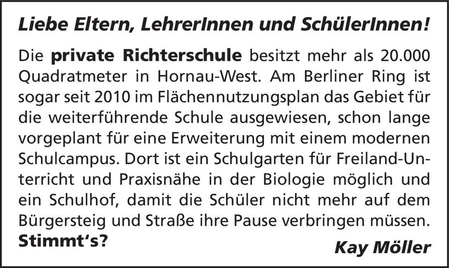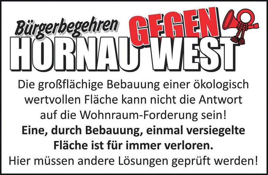 Wer in den letzten Jahren mal mit offenen Sinnen einen Frühlings-, Sommer- oder Herbstnachmittag im geplanten Baugebiet „Hornau-West“ zugebracht hat, der weiß, warum es eine Schande und ein unersetzlicher Verlust wäre, dieses einzigartige Naturreservat mit Beton, Häusern und Asphalt unwiderruflich zu zerstören. Selbst wer im Winter bei matschigem Schnee dieses einzigartige Fleckchen mit seinen Feucht- und Sumpfgebieten erkundet, der wird erahnen, was hier an Lebensvielfalt verborgen ist – und dann einfach weg sein wird.