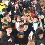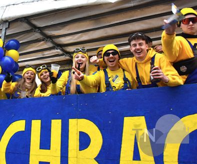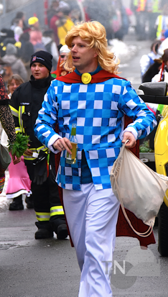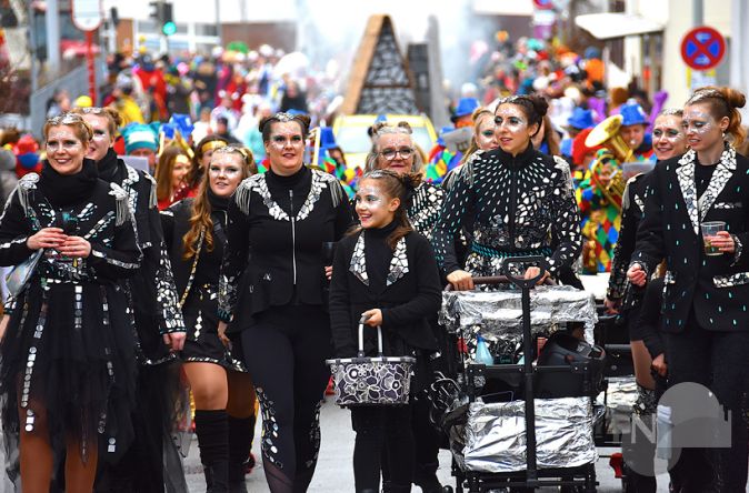 Wer in die Gesichter der Kleinsten guckte, sah schnell, dass dem Fastnachts-Nachwuchs das Wetter im Grunde überhaupt nichts ausmachte: Kein Gemecker und Gemotze, kein „Mir ist ka-haaaalt!“, keine quengelnden „Ich will nach Hause“-Kinder, die an dem Ärmel der Eltern ziehen – viel zu groß war die Freude über den ellenlangen Umzug und über die unters Volk geworfenen Süßigkeiten. Wenn selbige dann und wann in einer Pfütze landen sollten, tat das der Sammelwut der Junioren keinen Abbruch, raus aus der Pfütze, rein in die Tüte, Hände abputzen, weiter machen!