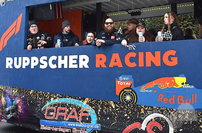 Dass Ruppertshain nun offensichtlich über ein stadtteileigenes Racing-Team eines bekannten Brauseherstellers verfügt, war wohl selbst den eingefleischten Ruppschern neu, die Herren- und Damenmannschaften des SV Fischbach hatten sich passend zu den Vereinsfarben als Grus Minions aus „Ich: Einfach unverbesserlich“ verkleidet, ein ganzes Dorf voll unbeugsamer Gallier zog ebenfalls mit um die Häuser (Troubadix durfte sogar ungefesselt und ungeknebelt mitlaufen!) und die „Sodener Karneval Gesellschaft 1948 e.V.“ hatte ganze Monatsrationen abgepacktes Popcorn dabei, für welches sich ausreichend dankbare Abnehmer fanden.