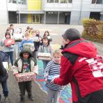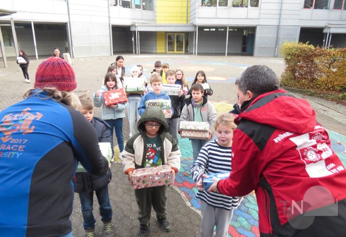 Kelkheim (fw) – Die Schlange reicht vom Schulhof bis zu einem der Gebäude. Teilweise windet sie sich sogar übers Pflaster. Fast jedes Kind der Grundschule „Sindlinger Wiesen“ hält ein Geschenk in der Hand und wartet geduldig, bis es an der Reihe ist. Leon (9) und Mohamed (8) haben sogar ein riesiges Paket, das sie nur zu zweit tragen können. Aber sie haben es ja auch gemeinsam gepackt, wie die Drittklässler stolz erzählen. Was genau drin ist, wollen sie nicht verraten. In jedem Fall aber Spiel- und Schulsachen sowie Hygieneartikel. Es ist für einen Jungen in Osteuropa bestimmt. „Wir wollen einfach eine gute Sache für Kinder machen“, sagt Mohamed.